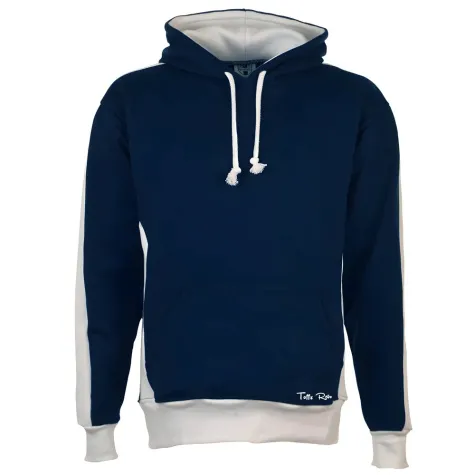 Toffs Retro Navy Hoodie White sleeve panels.