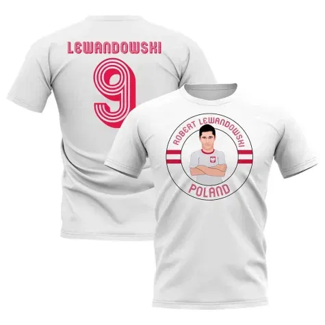 Robert Lewandowski Poland Illustration T-Shirt (White)