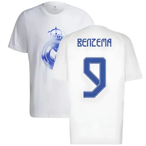 Real Madrid 2021-2022 Training Tee (White-Blue) (BENZEMA 9)