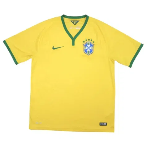 The Brazil 2014-15 Home Shirt as worn by players such as Neymar, Thiago Silva, Dani Alves, Marcelo and Maicon as the team finished fourth at the 2014 World Cup.