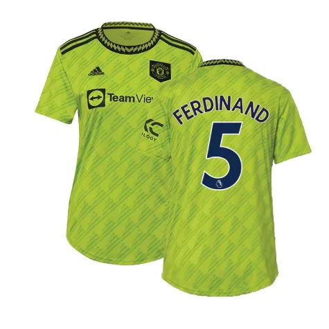 Official Rio Ferdinand football shirt.. This is the NEW Manchester United Third Shirt for the 2022-2023 season which is manufactured by Adidas and is available in all Womens sizes.