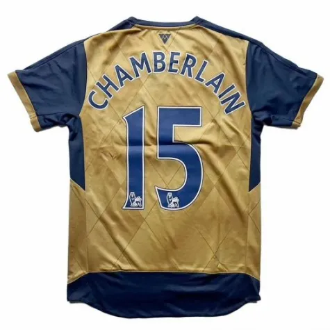The Arsenal 2015-16 Away Shirt (Chamberlain #15) was worn by players such as Ramsey, Walcott, Arteta, Wilshere and Chamberlain as the team won the FA Community Shield and finished 2nd in the Premier League.