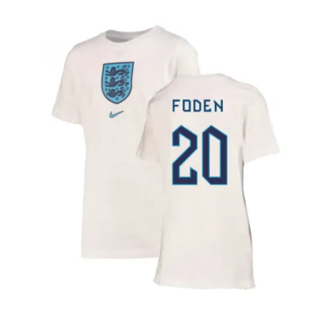 Official Phil Foden football shirt. This is the England Crest T-Shirt for the 2022-2023 season which is manufactured by Nike and is available in all Adult sizes.