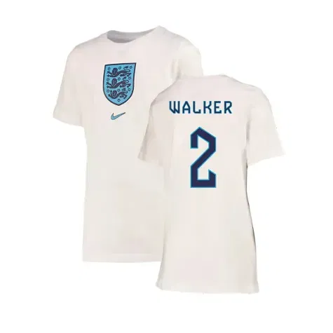 Official Kyle Walker football shirt. This is the England Crest T-Shirt for the 2022-2023 season which is manufactured by Nike and is available in all Adult sizes.