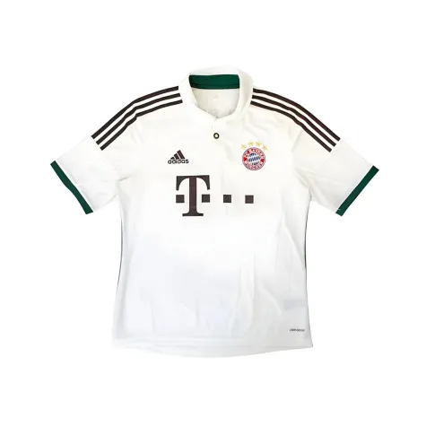 The Bayern Munich 2013-14 Away Shirt as worn by players such as Lewandowski, Muller, Ribery, Robben Lahm and Schweinsteiger as the team finished 1st in the Bundesliga and won the DFB-Pokal, the UEFA Super Cup and Club World Cup.
