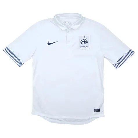 The France 2012-13 Away Shirt as worn by players such as Benzema, Ribery, Evra and Malouda as the team reached the Quarter-Finals at Euro 2012.