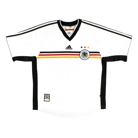 The Germany 1998-00 Away Shirt as worn by players such as Klinsmann, Matthaus, Kohler, Hasler and Moller as the team reached the Quarter-Final at the 1998 World Cup.