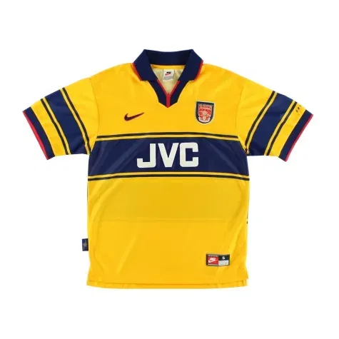 The Arsenal 1997-99 Away Shirt was worn by players such as Dixon, Vieira, Wright and Bergkamp as the team won the FA Cup and finished 1st in the Premier League.