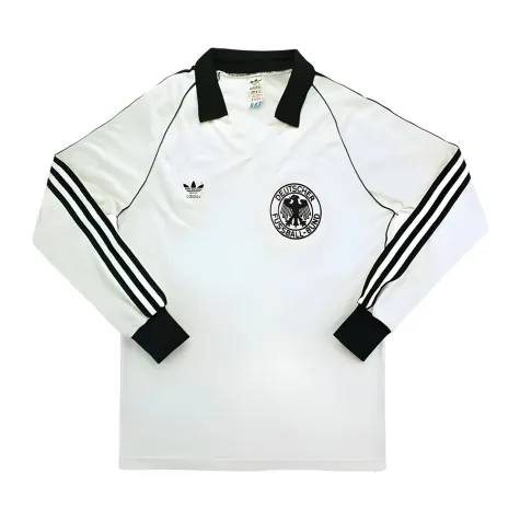 The Germany 1984-85 Long Sleeved Home Shirt as worn by players such as Brehme, Forster, Matthaus, Voller and Rummenigge as the team finished 3rd in the 1984 UEFA European Championships.