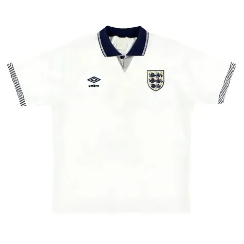 The England 1990-92 Home Shirt as worn by players such as Lineker, Robson, Gascoigne Butcher and Waddle as the team finished 4th at the 1990 World Cup and 4th in their group at Euro 1992.