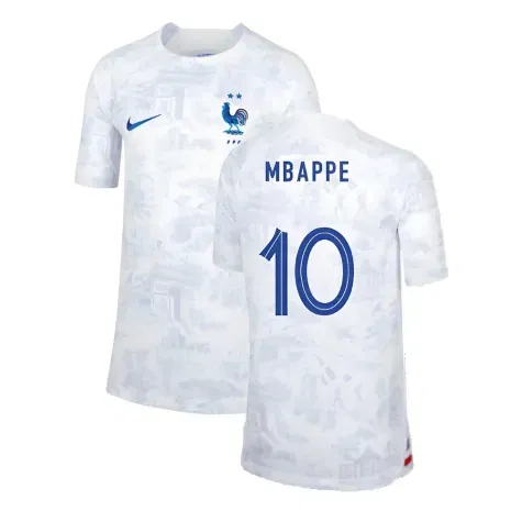 Official Kylian Mbappe football shirt. This is the NEW France Away Shirt for the 2022-2023 season and World Cup which is manufactured by Nike and is available in all Childrens sizes.