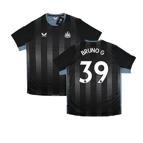 Official Bruno Guimares football shirt. This is the NEW Newcastle United Staff Training Tee (Black) for the 2022-2023 season which is manufactured by Castore and is available in all Adult sizes.