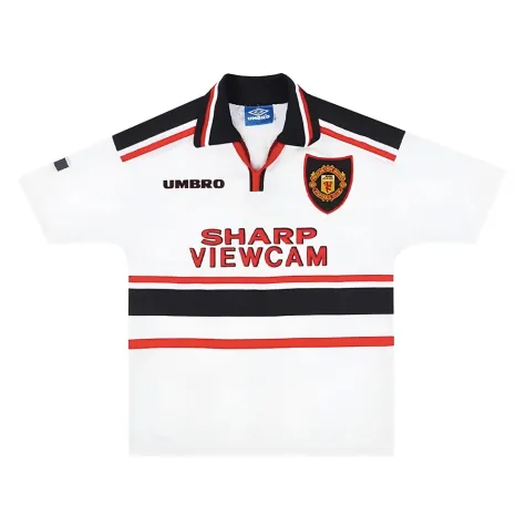 This Manchester United 1997-98 Away Shirt features a classic Umbro design from the Treble winning season as worn in the famous FA Cup Semi-Final replay against Arsenal. This shirt was worn by the likes of Beckham, Keane, Stam, Sheringham, Cole, Scholes, Solskjaer.