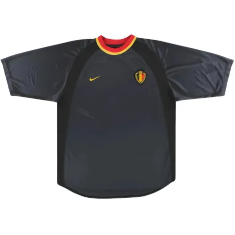 The Belgium 2000-02 Away Shirt as worn by Goor, Mpenza, Wilmots, Strupar and Walem as the side cohosted the Euro 2000. Belgium however could not progress from the group stage, managing just 3 points from a 2-1 victory against Sweden in their opening match.