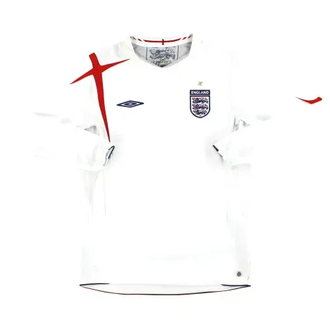 The England 2005-07 Home Long Sleeve Shirt worn by players such as Rooney, Beckham, Terry, Lampard and Gerrard as the team reached the 2006 World Cup quarter-finals.