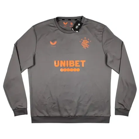 Excellent condition - Small faint stain below the sponsor. Transferred badge, colour stitching, sponsor print and material are all excellent. Come with original tags. Excellent condition overall.Rangers 2020-21 Castore Training Jumper.