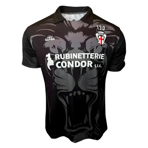 Black jersey base with sublimation-printed lion with polo-type collar. Under the back of the collar is the words FC Pro Vercelli 1892 and the tricolor shield to commemorate the 7 Italian titles won by the club.