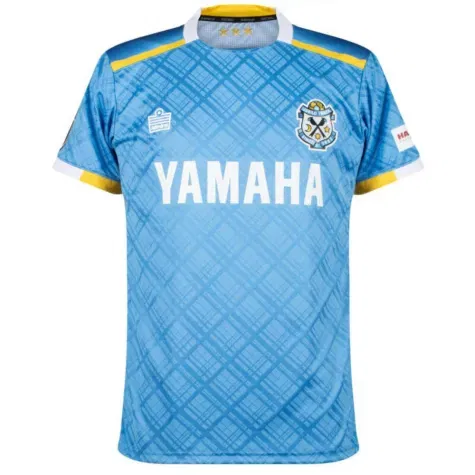 The 2022-2023 Jubilo Iwata home football shirt features a vibrant blue color with the iconic Yamaha brand name proudly displayed across the front in bold, white font. The shirt has a simple yet classic design, with short sleeves and a subtle V-neck collar. The blue colour is deep and bold and runs consistently throughout the entire shirt. The material is lightweight and breathable, making it ideal for football players to wear while competing on the field. Jubilo Iwata fans will love sporting this stylish and modern home shirt during the upcoming season.