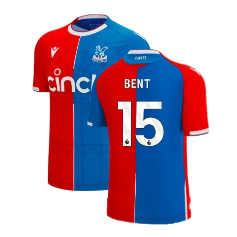 Official Marcus Bent football shirt. This is the NEW Crystal Palace Home Shirt for the 2023-2024 season which is manufactured by Macron and is available in all Adult sizes.