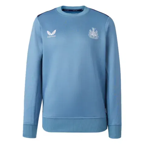 Celebrate The Magpies with the Juniors Newcastle United Players Training Sweatshirt. This comes in a Bluestone colourway with the club crest and Castore branding on the chest. Made from comfortable soft-stretch fabric and featuring a practical ribbed crew neckline, this is ideal for training when the weather gets cooler.