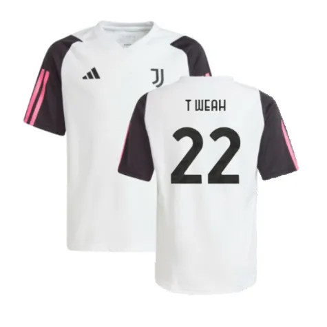 Official Timothy Weah football shirt. This is the NEW Juventus Training Shirt (White) - Kids for the 2023-2024 season which is manufactured by Adidas and is available in all Childrens sizes.