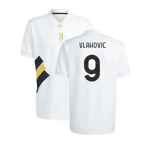 Official Dusan Vlahovic football shirt. This is the NEW Juventus Icon Jersey (White) for the 2023-2024 season which is manufactured by Adidas and is available in all Adult sizes.