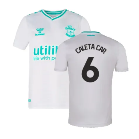 Official Duje Ćaleta-Car football shirt. This is the NEW Southampton Away Shirt (Kids) for the 2023-2024 season which is manufactured by HUmmel and is available in all Childrens sizes.