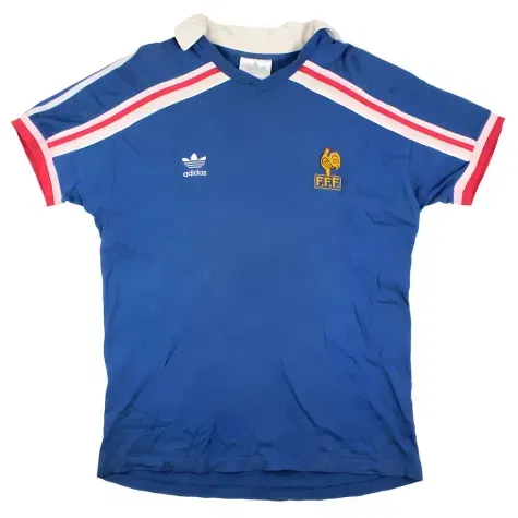 The France 1986-90 Home Shirt as worn by players such as Platini, Papin and Fernandez as the team finished 3rd at the 1986 World Cup.
