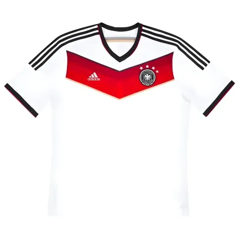 The Germany 2014-15 Home Shirt as worn by players such as Lahm, Schweinsteiger, Klose, Muller and Gotze as the team won the 2014 World Cup.