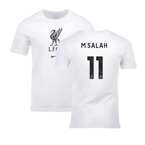 Official Mohamed Salah football shirt. This is the NEW Liverpool Crest Tee (White) for the 2023-2024 season which is manufactured by Nike and is available in all Adult sizes.