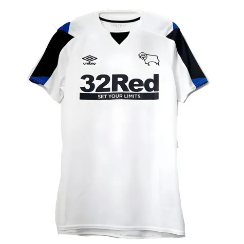 EXCELLENT condition - This shirt is in excellent condition. The badges and sponsor are transferred and have no flaws. There are some very small marks on the back lower right side, and some very minor cracking to the transfer on the top of the back of the shirt. The colours are bright and the material feels nice. Very minimal signs of wear. Excellent condition overall.The Derby County 2021-22 Home Shirt was worn by players such as Lawrence, Bird, Sibley, Knight and Stretton as the team finished 23rd in the English Championship and were relegated to the English League One.