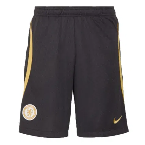 The 2023-2024 Chelsea FC Strike Dri-FIT Shorts. With design details specifically tailored for football's rising stars, a slim, streamlined fit ensures that nothing comes between you and the ball. Sweat-wicking technology helps keep you cool and composed while you fine-tune your skills.