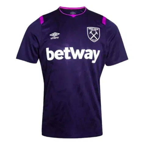 The Umbro West Ham 2019-2020 Third Shirt which features the club crest on the chest. The shirt has a stylish shattered diamond jacquard front graphic with contrast rib crew neckline and shoulder panel. A tonal colour Hammers crest and bespoke back neck sign off complete the look.