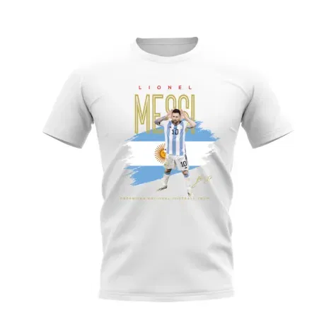 Lionel Messi Argentina Football Celebration T-Shirt (White)
