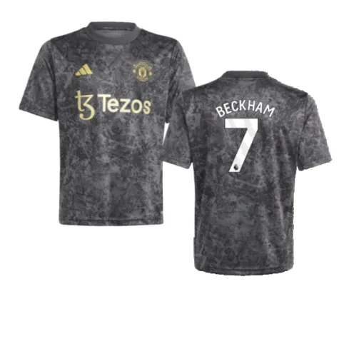 2023-2024 Man Utd Pre-Match Shirt (Black) - Kids (Beckham 7)