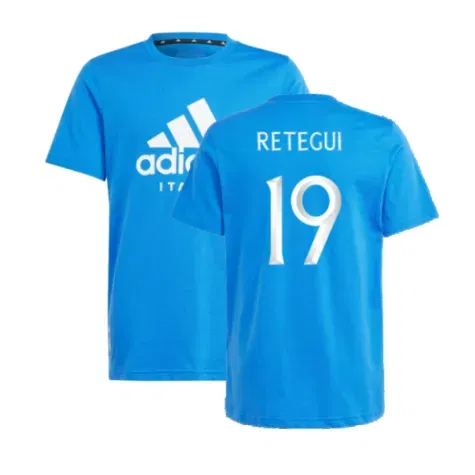 Official Mateo Retegui football shirt. This is the NEW Italy DNA Tee (Blue) - Kids for the 2024-2025 season which is manufactured by Adidas and is available in all Childrens sizes.