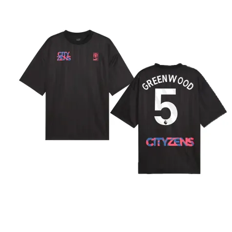 2023-2024 Man City FtblNrgy Jersey (Black) (Greenwood 5)