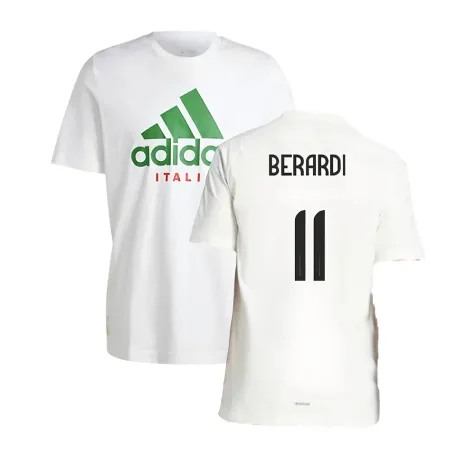 Official Domenico Berardi football shirt. This is the NEW Italy DNA Graphic Tee (White) for the 2024-2025 season which is manufactured by Adidas and is available in all Adult sizes.
