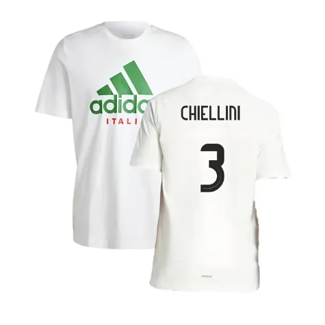 Official Giorgio Chiellini football shirt. This is the NEW Italy DNA Graphic Tee (White) for the 2024-2025 season which is manufactured by Adidas and is available in all Adult sizes.