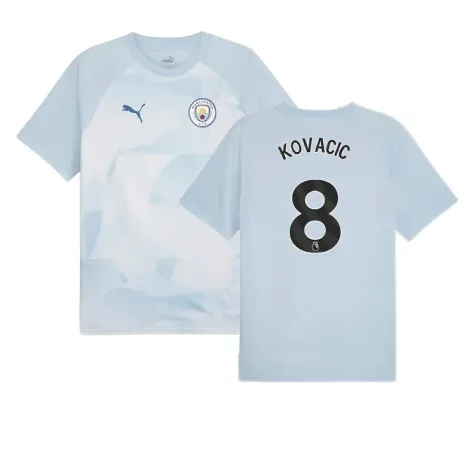 Official Mateo Kovacic football shirt. This is the NEW Man City Prematch SS Jersey (Silver Sky) for the 2023-2024 season which is manufactured by Puma and is available in all Adult sizes.