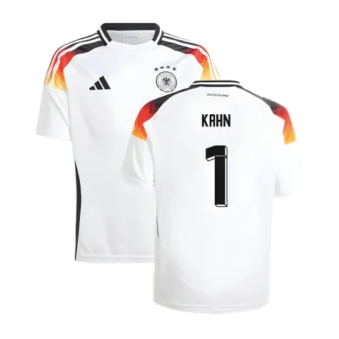 Official Oliver Kahn football shirt. This is the NEW Germany Home Shirt (Kids) for the 2024-2025 season which is manufactured by Adidas and is available in all Childrens sizes.