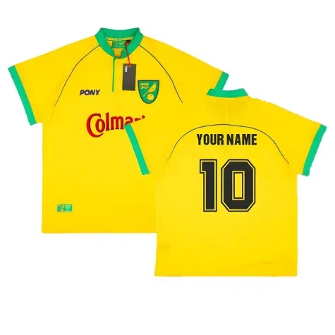 Official Your Name football shirt. This is the NEW 1997-1999 Norwich City Home Pony Reissue Shirt which is manufactured by Pony and is available in all Adult sizes.
