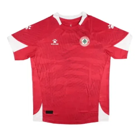 The Lebanon 2024 home shirt uses a bespoke v-neck design from the former Real Madrid technical sponsor. The shirt is in the red of the Lebanese national flag with the white of the flag adding details.