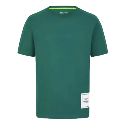 Minimalist look, with dropped shoulder crossover stitched seams and a subtle rubberized Aston Martin F1 Team logo badge on the lower front. 100% organic cotton T-shirt in a relaxed, oversized fit.