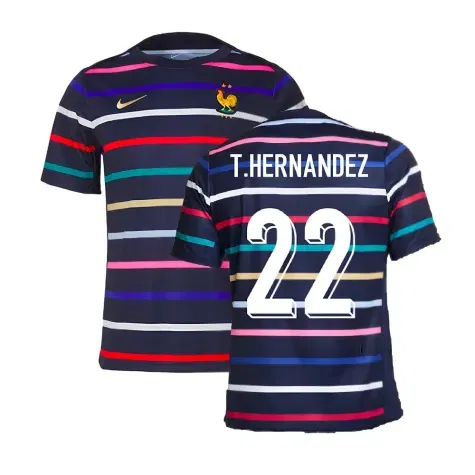Official Theo Hernandez football shirt. This is the NEW France Academy Pro Home Pre-Match Top (Navy) for the 2024-2025 season which is manufactured by Nike and is available in all Adult sizes.