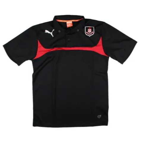 The Airdrie 2015-2016 Pre-Match Buttoned Polo Shirt in Black/Red, a sophisticated and sporty choice for fans looking to make a statement before kick-off. This meticulously crafted polo shirt blends classic design with modern detailing, ensuring both style and comfort for supporters.