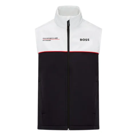 Presented in team colours the Porsche Team Gilet offers flexibility and water repellent material.