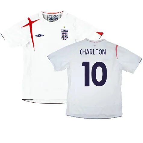 Official Bobby Charlton football shirt. This is the England 2005-2007 Home Shirt (XL) (Very Good) which is manufactured by Umbro.