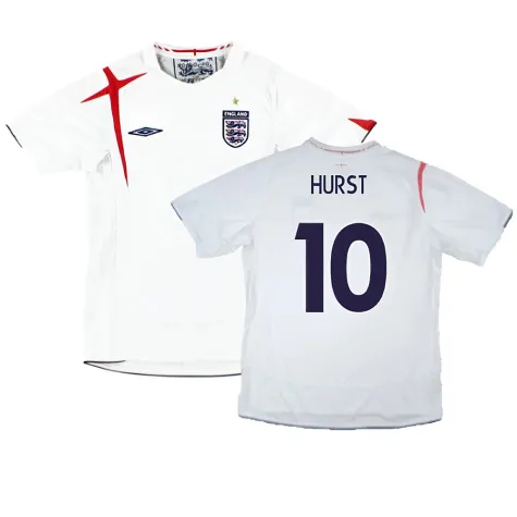 Official Geoff Hurst football shirt. This is the England 2006-08 Home Shirt (XL) (Excellent) which is manufactured by Umbro.