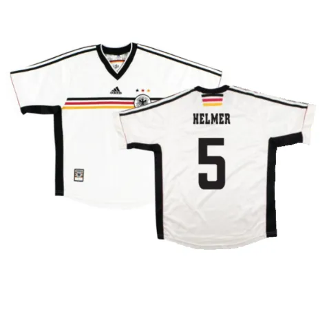 The Germany 1998-00 Home Shirt as worn by players such as Klinsmann, Matthaus, Kohler, Hasler and Moller as the team reached the Quarter-Final at the 1998 World Cup.